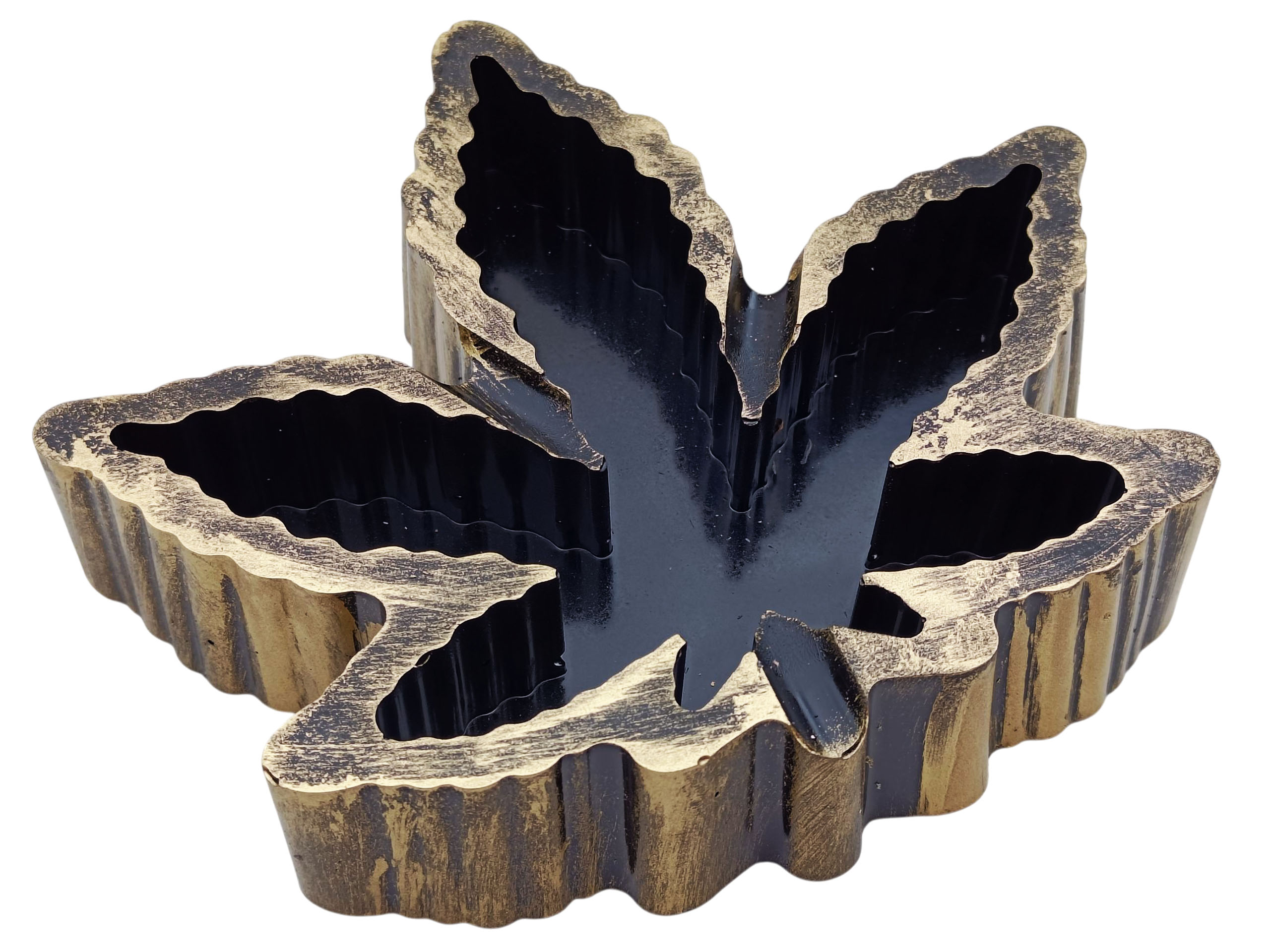 Szukasz oryginalnego upominku? Ta popielniczka w kształcie liścia marihuany to idealny wybór dla osób ceniących swobodny styl i niebanalne dodatki. Wykonana z żywicy, z ręcznie wykończonymi detalami i złotymi przetarciami, wyróżnia się nietypowym designem i przyciąga uwagę.