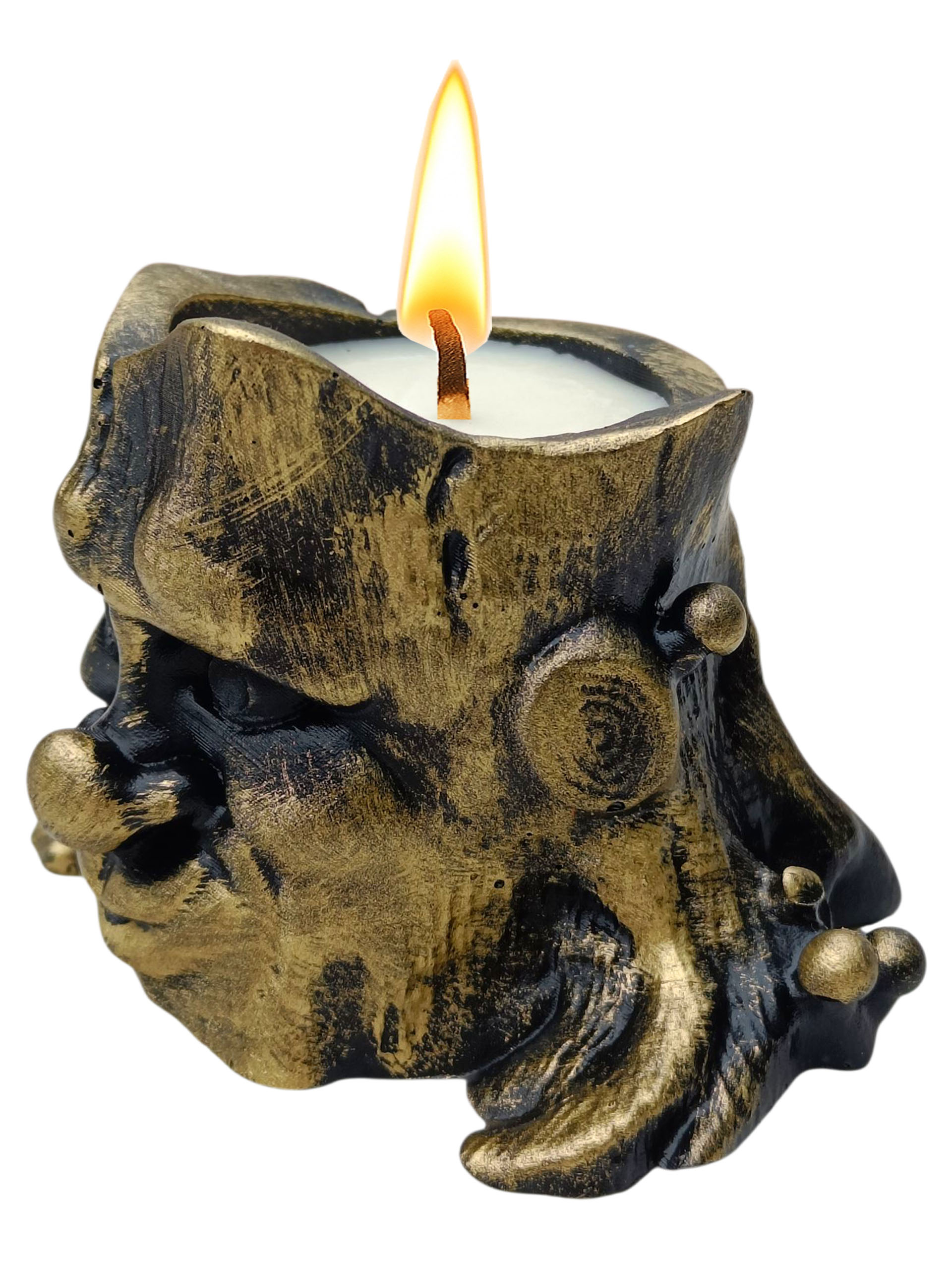 Wykonana z żywicy o antycznym wykończeniu i wypełniona naturalnym, ekologicznym woskiem, pali się bezdymnie i bezpiecznie, wprowadzając do wnętrza ciepło i przyjazny nastrój.