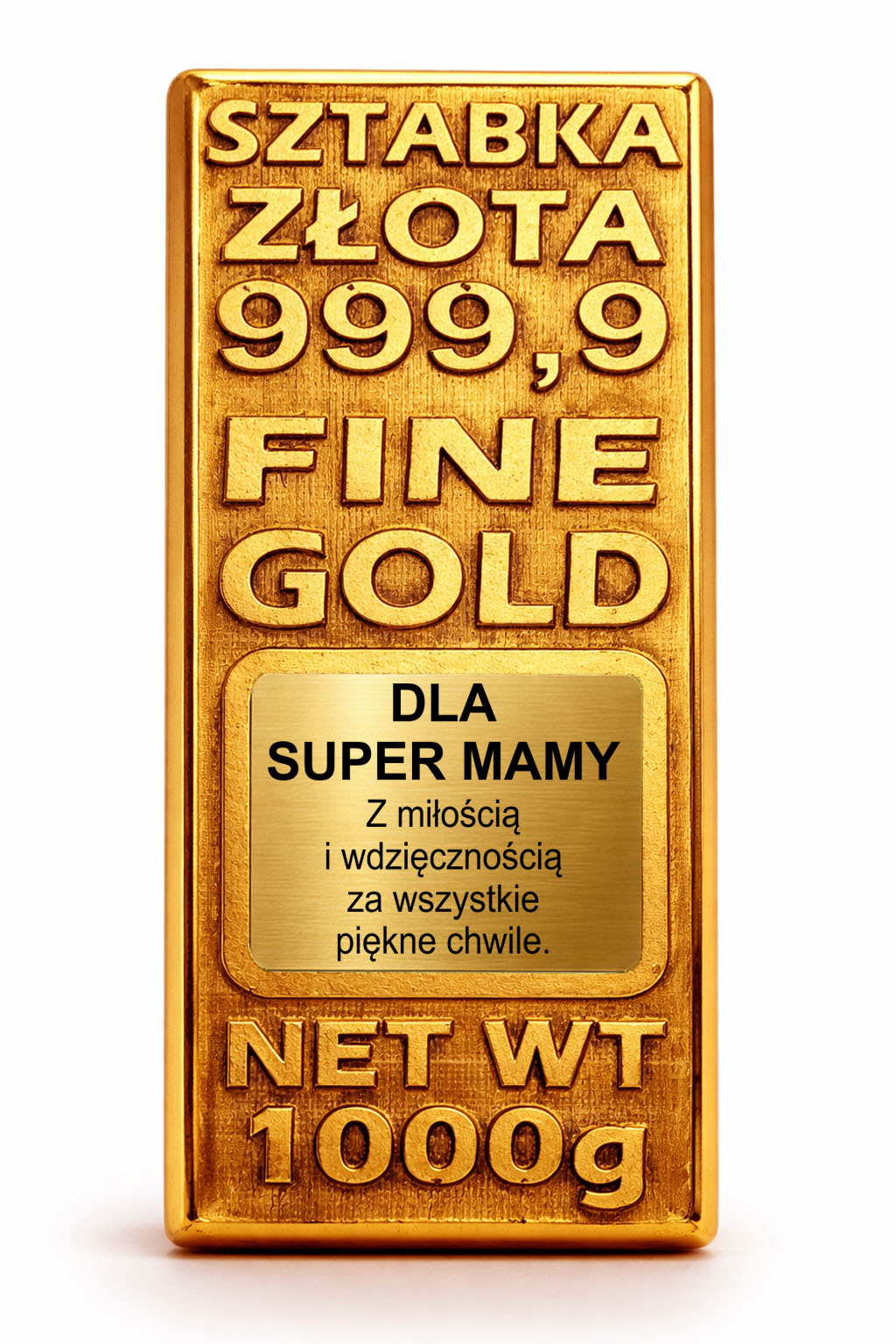 Ta złota sztabka to wzruszający i elegancki upominek, który zostaje na lata.
